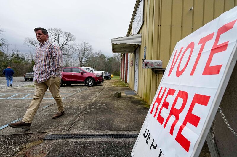 A voter enters the election station during a primary election, Tuesday, March 5, 2024, in Cusseta, Ala. Fifteen states and a U.S. territory hold their 2024 nominating contests on Super Tuesday this year. (AP Photo/Mike Stewart) (Mike Stewart/AP) Robert Ward votes at the volunteer fire station during a primary election, Tuesday, March 5, 2024, in Cusseta, Ala. Fifteen states and a U.S. territory hold their 2024 nominating contests on Super Tuesday this year. (AP Photo/Mike Stewart) (Mike Stewart/AP) FILE - Alabama Rep. Anthony Daniels speaks with the media during the opening of the legislative session at the Alabama State House in Montgomery, Ala., Jan. 11, 2022. Daniels is seeking the Democratic nomination in Alabama's 2nd Congressional District. (Mickey Welsh/The Montgomery Advertiser via AP, File) (Mickey Welsh/AP) FILE - Alabama Rep. Juandalynn Givan asks a question during a hearing, April 10, 2017, in Montgomery, Ala. Givan is seeking the Democratic nomination for Alabama's 2nd Congressional District. (Albert Cesare/The Montgomery Advertiser via AP, Pool, File) (Albert Cesare/AP) FILE - Alabama Sen. Rodger Smitherman, left, and Sen. Greg Albritton chat during the special session on COVID-19 relief money, held in the Senate chamber of the Alabama State House in Montgomery, Ala., Jan. 25, 2022. Albritton is seeking the GOP nomination in Alabama's 2nd Congressional District. (Mickey Welsh/The Montgomery Advertiser via AP, File) (Mickey Welsh/AP) FILE - Alabama Rep. Merika Coleman talks during debate on the House floor at the Alabama Statehouse in Montgomery, Ala., March 27, 2018. Coleman is seeking the Democratic nomination in Alabama's 2nd Congressional District. (Mickey Welsh/The Montgomery Advertiser via AP, File) (Mickey Welsh/AP) FILE - Alabama Sen. Dick Brewbaker, R-Montgomery, speaks at the podium on the Senate floor during a special legislative session, Aug. 17, 2016, at the Alabama State House in Montgomery, Ala. The former state senator is seeking the GOP nomination in Alabama's 2nd Congressional District. (Julie Bennett/The Birmingham News via AP, File) (Julie Bennett/AP) In this image provided by the Figures for Congress campaign, Shomari Figures, former deputy chief of staff to U.S. Attorney General Merrick Garland, poses for a photo. Figures is running for the Democratic nomination in Alabama's 2nd Congressional District. (Terri Baskin/Figures for Congress via AP) (Terri Baskin/AP) In this undated photo provided by Dobson for Congress, Caroleene Dobson poses for a photo in Alabama. Dobson is running for the 2nd Congressional District seat in Alabama. (Courtesy of Dobson for Congress via AP) (Uncredited/AP) FILE - Rep. Jerry Carl, R-Ala., talks a selfie with Rep. Jim Jordan, R-Ohio, as Republicans try to elect Jordan to be the new House speaker, Oct. 17, 2023, at the Capitol in Washington. Carl is running for the 1st Congressional district seat in Alabama. (AP Photo/Alex Brandon, File) (Alex Brandon/AP) FILE - House Judiciary Committee Chairman Jim Jordan, R-Ohio, left, speaks with Rep. Barry Moore, R-Ala., center, and Rep. Chip Roy, R-Texas, right, during a House Judiciary Committee Field Hearing, April 17, 2023, in New York. Moore is running for the 1st Congressional district seat in Alabama. (AP Photo/John Minchillo, File) (John Minchillo/AP) Alabama Rep. Napoleon Bracy looks on during debate at the State House in Montgomery, Ala., April 7, 2022. Bracy is seeking the 2024 Democratic nomination for Alabama's 2nd Congressional District. (Mickey Welsh/The Montgomery Advertiser via AP, File) (Mickey Welsh/AP) Jeremy Gray takes an oath at Greater Peace Missionary Baptist Church in Opelika, Ala., Nov. 7, 2018, after winning the election to the Alabama Legislature. Gray of Opelika is seeking the Democratic nomination for Alabama 2nd Congressional District. (Emily Enfinger/Opelika-Auburn News via AP) (Emily Enfinger/AP) Robert Ward prepares to vote at the volunteer fire station during a primary election, Tuesday, March 5, 2024, in Cusseta, Ala. Fifteen states and a U.S. territory hold their 2024 nominating contests on Super Tuesday this year. (AP Photo/Mike Stewart) (Mike Stewart/AP)