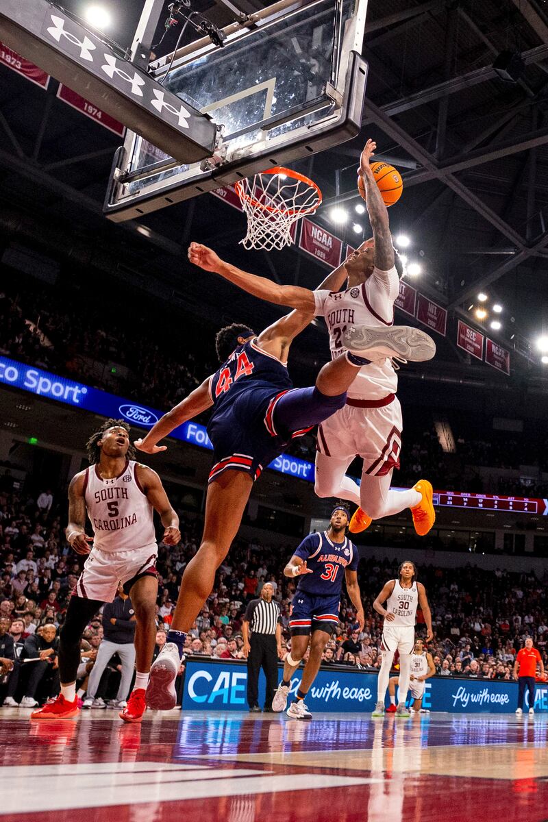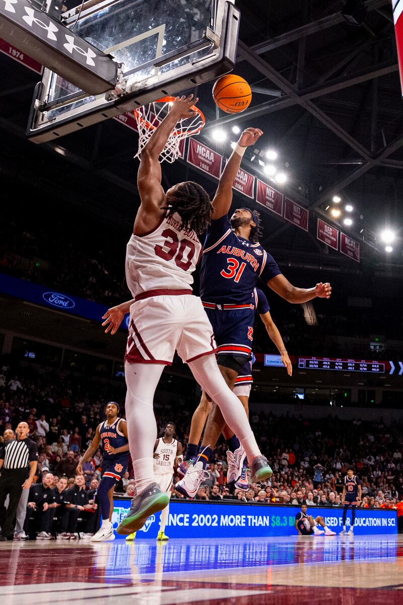 COLUMBIA, S.C. — COLUMBIA, S.C. (AP) — Tahaad Pettiford assisted on Dylan Cardwell’s go-ahead dunk and converted two free throws with 4.4 seconds remaining as No. 2 Auburn overcame an injury to leading scorer Johni Broom and rallied to beat South Carolina 66-63 on Saturday.