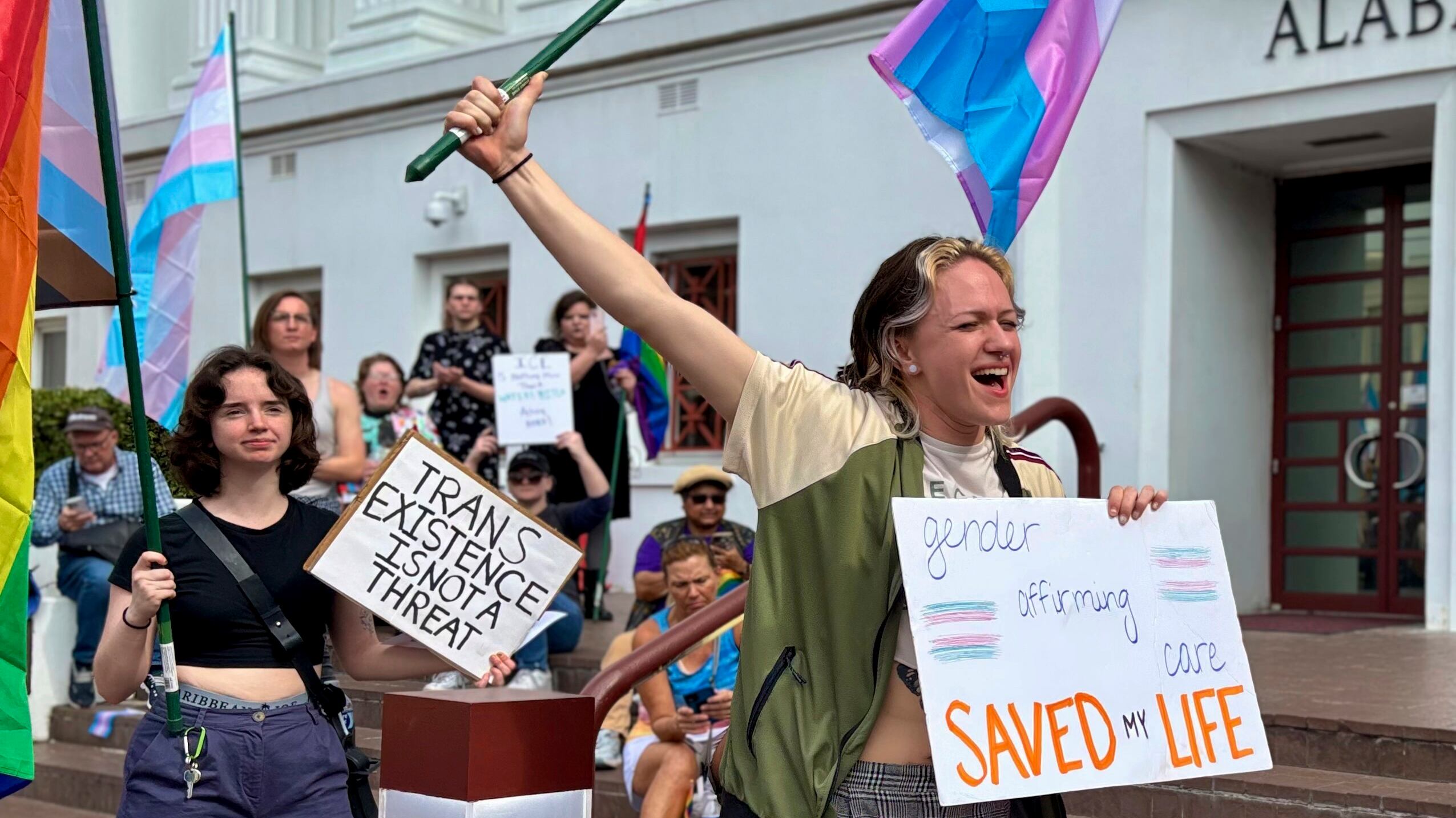 Trans people said the bills are an attempt to deny their existence or to capitalize on prejudice for political gain. Several hundred people marched to the Alabama Capitol and Statehouse Wednesday to protest the legislation and other bills that impact LGBTQ people.
