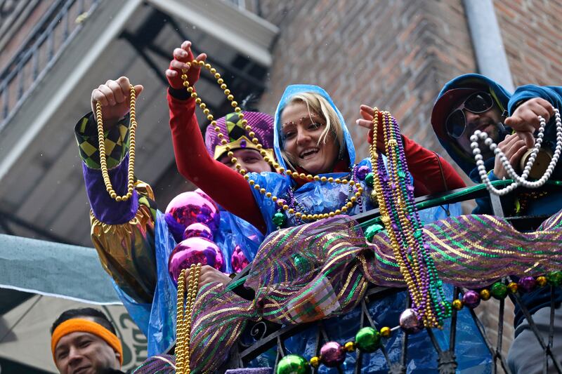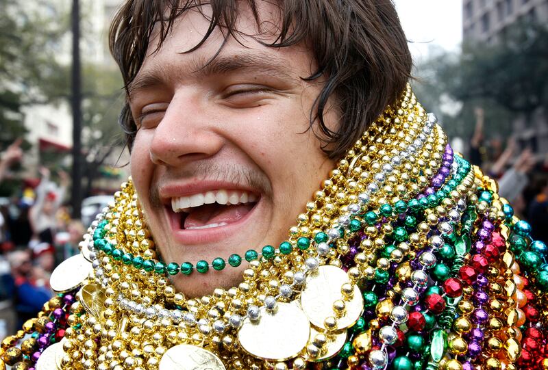 The bash includes feasting, drinking and a plethora of parades. Many spend their time along parade routes, with their hands raised in the air to catch “throws” — trinkets tossed to spectators by float riders and walking members of carnival clubs known as krewes.