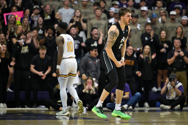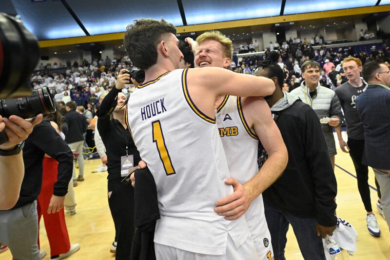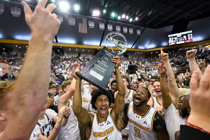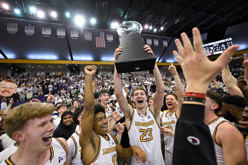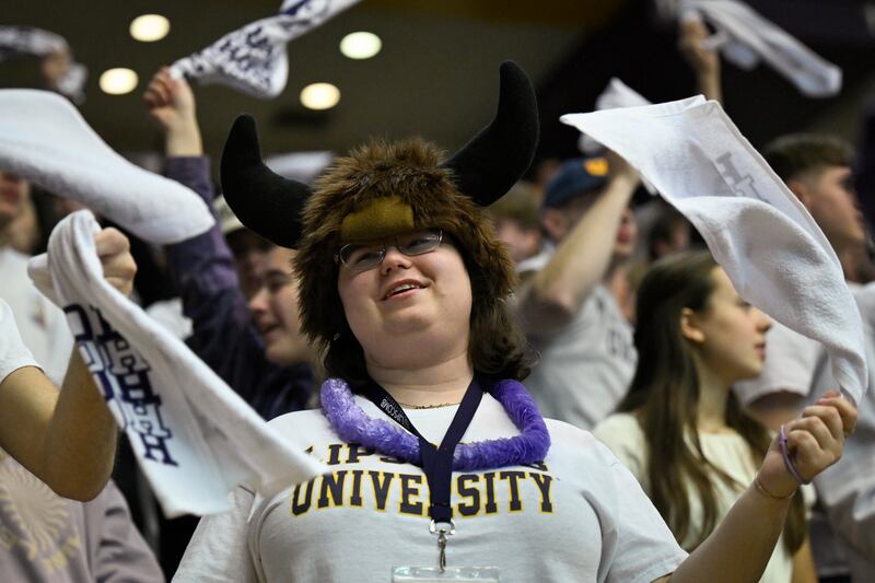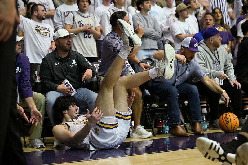 Lipscomb guard Will Pruitt (2) gets a hug from his mother Angie Pruitt as they celebrate the team's win in the Atlantic Sun Conference championship NCAA college basketball game against North Alabama, Sunday, March 9, 2025, in Nashville, Tenn. (AP Photo/John Amis) (John Amis/AP) Lipscomb guard Kellan Boylan (23) holds the trophy as he celebrates with guard Logan Suber (11) and other teammates after winning the Atlantic Sun Conference championship NCAA college basketball game against North Alabama, Sunday, March 9, 2025, in Nashville, Tenn. (AP Photo/John Amis) (John Amis/AP) Lipscomb guard Will Pruitt is hugged by forward Rylan Houck (1) after winning the Atlantic Sun Conference championship NCAA college basketball game against North Alabama, Sunday, March 9, 2025, in Nashville, Tenn. (AP Photo/John Amis) (John Amis/AP) Lipscomb guard Logan Suber (11) holds the trophy as he celebrates with guard Miles White (5) and other teammates after winning the Atlantic Sun Conference championship NCAA college basketball game against North Alabama, Sunday, March 9, 2025, in Nashville, Tenn. (AP Photo/John Amis) (John Amis/AP) Lipscomb center Charlie Williams goes to the floor on the sideline while scrambling for the ball against North Alabama during the first half of the Atlantic Sun Conference championship NCAA college basketball game Sunday, March 9, 2025, in Nashville, Tenn. (AP Photo/John Amis) (John Amis/AP) North Alabama guard Jacari Lane (5) reacts after scoring against Lipscomb during the first half of the Atlantic Sun Conference championship NCAA college basketball game Sunday, March 9, 2025, in Nashville, Tenn. (AP Photo/John Amis) (John Amis/AP) Lipscomb student Valerie Suddarth wears a bison hat while watching the first half of the Atlantic Sun Conference championship NCAA college basketball game against North Alabama, Sunday, March 9, 2025, in Nashville, Tenn. (AP Photo/John Amis) (John Amis/AP) North Alabama guard Will Soucie (0) reacts after scoring against Lipscomb during the first half of the Atlantic Sun Conference championship NCAA college basketball game Sunday, March 9, 2025, in Nashville, Tenn. (AP Photo/John Amis) (John Amis/AP) Lipscomb forward Jacob Ognacevic (41) is fouled by North Alabama forward Donte Bacchus, right, during the first half of the Atlantic Sun Conference championship NCAA college basketball game Sunday, March 9, 2025, in Nashville, Tenn. (AP Photo/John Amis) (John Amis/AP)