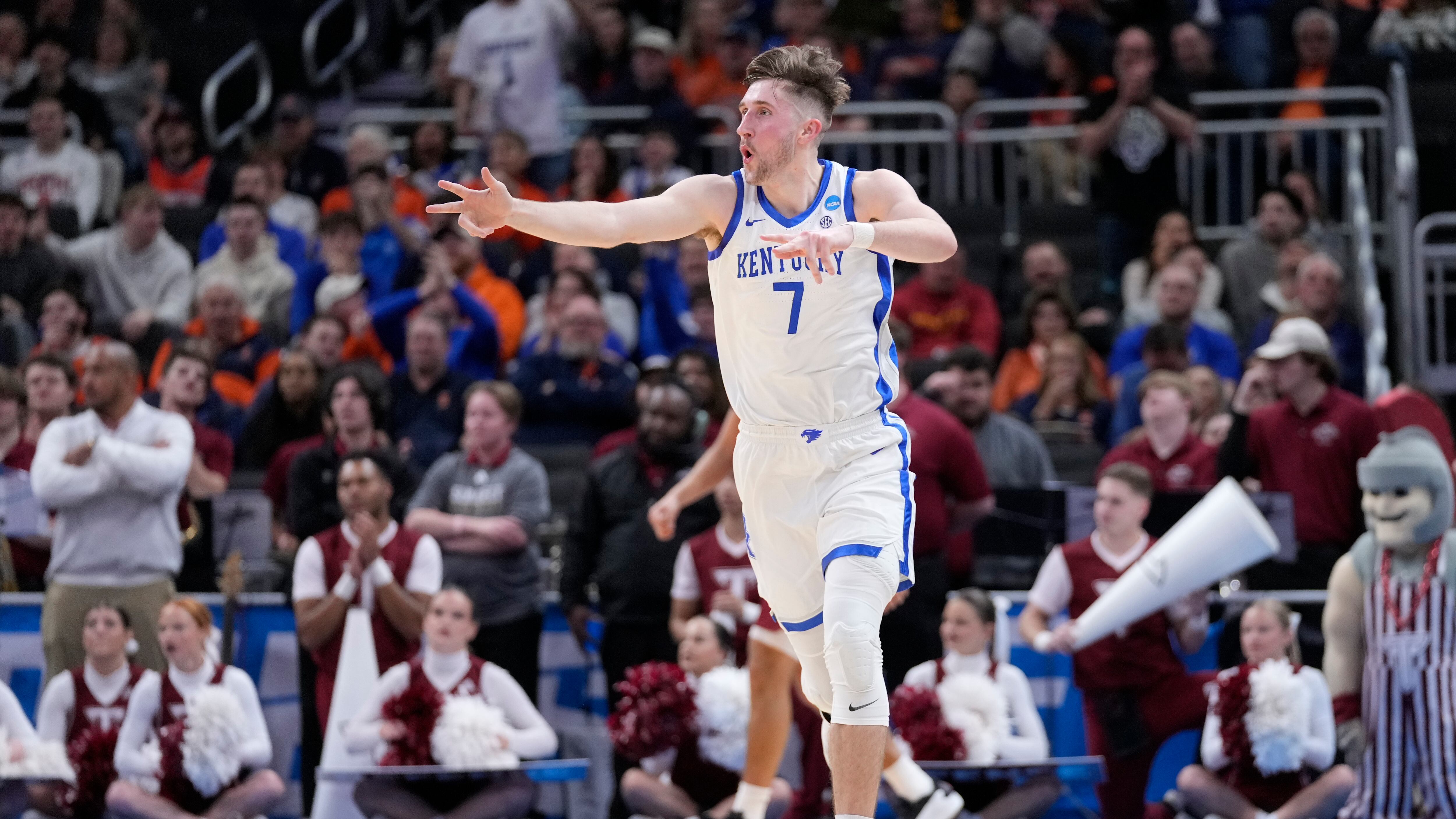 Kentucky had a 25-24 lead with 3:03 left in the first half when it started to pull away, scoring eight consecutive points in a little more than a minute. Trent Noah and Carr made back-to-back 3-pointers, and Williams drove the length of the court for a dunk.