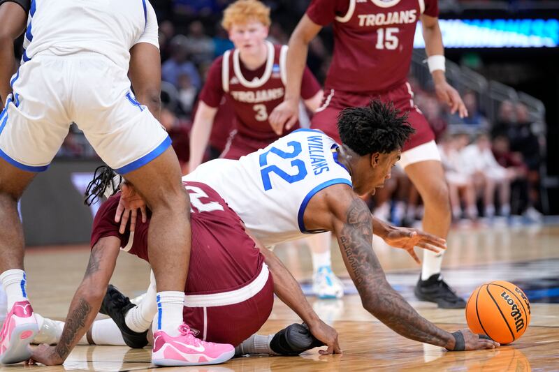 Kentucky had a 25-24 lead with 3:03 left in the first half when it started to pull away, scoring eight consecutive points in a little more than a minute. Trent Noah and Carr made back-to-back 3-pointers, and Williams drove the length of the court for a dunk.